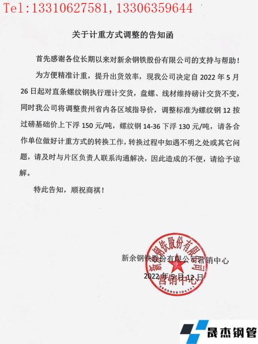 免責聲明:本網站(山東聊城晟杰無縫鋼管廠www.gdqiayu.com)刊載的“新余鋼鐵股份有限公司關于對貴州區域計重方式調整的告知函”等均源于網絡,版權歸原作者所有,且僅代表原作者觀點,本文所載信息僅供參考。轉載僅為學習與交流之目的,如無意中侵犯您的合法權益,請及時聯系刪除。本網站刊登此篇文章并不意味著本站贊同其觀點或證實其內容的真實性,我們不對其科學性、嚴肅性等作任何形式的保證。如果侵犯了您的版權,請盡快聯系我們予以撤銷,謝謝合作!