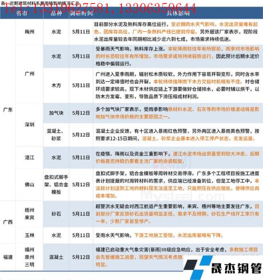 今年以來最強降雨過程已經在華南拉開帷幕。據氣象水文部門預測,5月9日至13日江南南部和華南地區將迎來入汛以來最強降雨過程,本輪強降雨覆蓋范圍廣、持續時間長、累計雨量大、局地雨勢猛,廣東、廣西、福建、重慶、四川、貴州、云南?。ㄗ灾螀^、直轄市)等多地啟動防汛Ⅳ級應急響應,部分強降雨天氣影響下多地施工進度受損,運輸和終端施工進度受限,建筑材料市場行情弱勢運行。