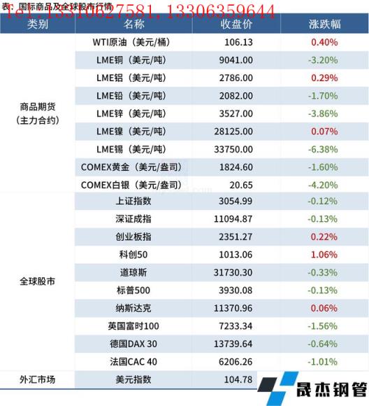 免責聲明:本網站(山東聊城晟杰無縫鋼管廠www.gdqiayu.com)刊載的“2022年05月13日早讀:中鐵協呼吁錳企減產,62%鐵礦石指數跌破130美元”等均源于網絡,版權歸原作者所有,且僅代表原作者觀點,本文所載信息僅供參考。轉載僅為學習與交流之目的,如無意中侵犯您的合法權益,請及時聯系刪除。本網站刊登此篇文章并不意味著本站贊同其觀點或證實其內容的真實性,我們不對其科學性、嚴肅性等作任何形式的保證。如果侵犯了您的版權,請盡快聯系我們予以撤銷,謝謝合作!