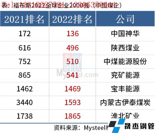 免責聲明:本網站(山東聊城晟杰無縫鋼管廠www.gdqiayu.com)刊載的“中國7家煤企上榜福布斯2022全球企業2000強”等均源于網絡,版權歸原作者所有,且僅代表原作者觀點,本文所載信息僅供參考。轉載僅為學習與交流之目的,如無意中侵犯您的合法權益,請及時聯系刪除。本網站刊登此篇文章并不意味著本站贊同其觀點或證實其內容的真實性,我們不對其科學性、嚴肅性等作任何形式的保證。如果侵犯了您的版權,請盡快聯系我們予以撤銷,謝謝合作!