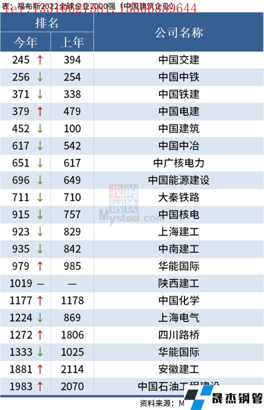 免責聲明:本網站(山東聊城晟杰無縫鋼管廠www.gdqiayu.com)刊載的“中國20家建筑企業上榜福布斯2022全球企業2000強”等均源于網絡,版權歸原作者所有,且僅代表原作者觀點,本文所載信息僅供參考。轉載僅為學習與交流之目的,如無意中侵犯您的合法權益,請及時聯系刪除。本網站刊登此篇文章并不意味著本站贊同其觀點或證實其內容的真實性,我們不對其科學性、嚴肅性等作任何形式的保證。如果侵犯了您的版權,請盡快聯系我們予以撤銷,謝謝合作!