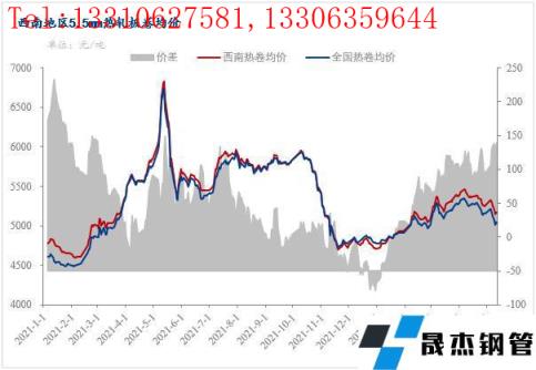 首先,看一下今年西南整體熱卷價格走勢呈現先漲后跌的態勢。以西南地區熱卷均價為例,今年西南5.5mm普卷最高值出現在4月8日,市場價格為5458元/噸,年前價格4720元/噸,較年初上漲738元/噸。先漲的原因主要分為外部和內部。外部因素:一、年初受冬奧會及兩會等影響,無縫厚壁鋼管廠家限產擾動下熱卷產量下降,壓縮熱卷現貨供應,低供應格局給予卷價上漲動力。二、俄烏沖突導致全球供需平衡被打破,海外熱卷上漲至1500美元/噸,刺激國內熱卷出口量大幅增長。內部原因:一、一季度期間重鋼、攀鋼、罡宸等本地熱卷無縫厚壁鋼管廠家陸續檢修維護,本地供應明顯減少。二、年初西南地區熱卷價格對比全國偏低,外圍資源無利可圖,區域無縫厚壁鋼管廠家外發資源增加,使得市場長期呈現供不應求的狀態,西南地區價格節節攀升。而后跌是在進入4月份以來,新一輪疫情襲擊全國多地,造成制造業供應鏈阻塞,下游需求被迫延遲,從而引發價格回落。