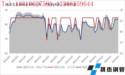再次從生產方面看,5月6日整個南方大區鋼鐵企業開工率為84.62%,較節前持平,產能利用率為83.45%,較節前小幅上升,實際產量為66.66,同樣相對節前有所上升。從利潤角度看,據調研4月底螺紋鋼平均含稅成本為5052元/噸,環比增加66元/噸,增幅1.3%,盈利-154元/噸,減少60元/噸;熱卷為5129元/噸,環比增加76元/噸,增幅1.5%,盈利-70元/噸,減少185元/噸;中厚板為5142元/噸,環比增加74元/噸,增幅1.5%,盈利18元/噸,減少145元/噸。當前熱卷盈利水平表現好于螺紋鋼弱勢中厚板,在產量壓減的影響下,綜合性無縫厚壁鋼管廠家對于熱卷的生產進行適時調整,以及部分新上產量釋放,預計三季度產量同比大體持平。