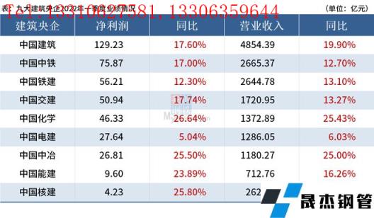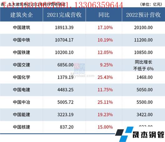 免責聲明:本網站(山東聊城晟杰無縫鋼管廠www.gdqiayu.com)刊載的“9大建筑央企預計2022年營收超6.6萬億元”等均源于網絡,版權歸原作者所有,且僅代表原作者觀點,本文所載信息僅供參考。轉載僅為學習與交流之目的,如無意中侵犯您的合法權益,請及時聯系刪除。本網站刊登此篇文章并不意味著本站贊同其觀點或證實其內容的真實性,我們不對其科學性、嚴肅性等作任何形式的保證。如果侵犯了您的版權,請盡快聯系我們予以撤銷,謝謝合作!