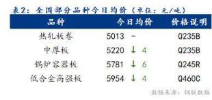 今日全國部分品種均價趨弱,其中全國熱軋板卷均價平穩,中厚板下跌4元/噸。