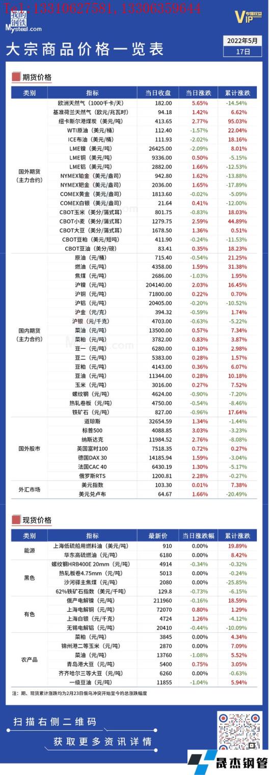 免責聲明:本網站(山東聊城晟杰無縫鋼管廠www.gdqiayu.com)刊載的“俄烏局勢丨大宗商品價格一覽表(5月17日)”等均源于網絡,版權歸原作者所有,且僅代表原作者觀點,本文所載信息僅供參考。轉載僅為學習與交流之目的,如無意中侵犯您的合法權益,請及時聯系刪除。本網站刊登此篇文章并不意味著本站贊同其觀點或證實其內容的真實性,我們不對其科學性、嚴肅性等作任何形式的保證。如果侵犯了您的版權,請盡快聯系我們予以撤銷,謝謝合作!