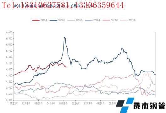 自四月下旬疫情在北京小范圍蔓延以來,京津冀建筑厚壁無縫鋼管價格震蕩趨弱運行?;仡櫛本┦袌鼋衲甑膬r格情況, 2月:需求提前收尾,生產節奏緩慢, 成本支持較高,價格小幅探漲30元/噸;3月:原料價格大漲,產量繼續縮減,庫存小幅去化,價格大幅走強220元/噸;4月,利好政策頻出,成本支撐較強,疫情反復影響,庫存去化受阻,價格上漲動力不強,僅趨強70元/噸。