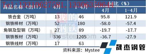 免責聲明:本網站(山東聊城晟杰無縫鋼管廠www.gdqiayu.com)刊載的“海關總署:4月中國出口板材336萬噸,同比降36.7%”等均源于網絡,版權歸原作者所有,且僅代表原作者觀點,本文所載信息僅供參考。轉載僅為學習與交流之目的,如無意中侵犯您的合法權益,請及時聯系刪除。本網站刊登此篇文章并不意味著本站贊同其觀點或證實其內容的真實性,我們不對其科學性、嚴肅性等作任何形式的保證。如果侵犯了您的版權,請盡快聯系我們予以撤銷,謝謝合作!