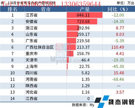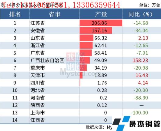從分省市數據來看,4月江蘇、安徽洗衣機產量超100萬臺,其中江蘇省以產量206.06萬臺排名第一,安徽省產量157.16萬臺排名第二,山東省產量66.32萬臺排名第三。