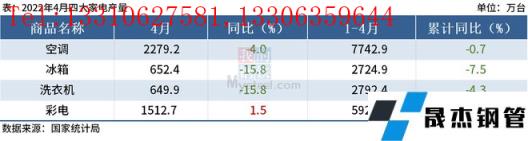 免責聲明:本網站(山東聊城晟杰無縫鋼管廠www.gdqiayu.com)刊載的“統計局:4月中國四大家電產量同比3降1增”等均源于網絡,版權歸原作者所有,且僅代表原作者觀點,本文所載信息僅供參考。轉載僅為學習與交流之目的,如無意中侵犯您的合法權益,請及時聯系刪除。本網站刊登此篇文章并不意味著本站贊同其觀點或證實其內容的真實性,我們不對其科學性、嚴肅性等作任何形式的保證。如果侵犯了您的版權,請盡快聯系我們予以撤銷,謝謝合作!