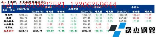 免責聲明:本網站(山東聊城晟杰無縫鋼管廠www.gdqiayu.com)刊載的“解讀:聚焦鋼鐵產業數據(5月19日)—虧損疊加控產,供應大幅減少,庫存維持去化”等均源于網絡,版權歸原作者所有,且僅代表原作者觀點,本文所載信息僅供參考。轉載僅為學習與交流之目的,如無意中侵犯您的合法權益,請及時聯系刪除。本網站刊登此篇文章并不意味著本站贊同其觀點或證實其內容的真實性,我們不對其科學性、嚴肅性等作任何形式的保證。如果侵犯了您的版權,請盡快聯系我們予以撤銷,謝謝合作!