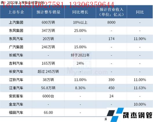 免責聲明:本網站(山東聊城晟杰無縫鋼管廠www.gdqiayu.com)刊載的“12家上市車企公布2022年經營計劃”等均源于網絡,版權歸原作者所有,且僅代表原作者觀點,本文所載信息僅供參考。轉載僅為學習與交流之目的,如無意中侵犯您的合法權益,請及時聯系刪除。本網站刊登此篇文章并不意味著本站贊同其觀點或證實其內容的真實性,我們不對其科學性、嚴肅性等作任何形式的保證。如果侵犯了您的版權,請盡快聯系我們予以撤銷,謝謝合作!