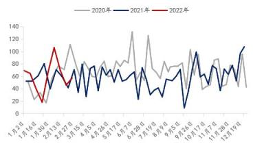 俄烏沖突以來,球團的供應確實受到一定影響,但從海關進口數據來看,今年1-2月份烏克蘭球團月度進口量也就是在20萬噸附近,折合每周約5萬噸;而從圖2中可以看出,2月中以來國產球團產量持續增加,從38家球團廠周度產量來看,球團產量由111.05萬噸增至147.28萬噸(2022年2月21日與2022年4月初相比,下文時間點同上),114家無縫厚壁鋼管廠家庫存中球團產量由18.86萬噸/天增至21.63萬噸/天,折合周度產量每周增加33.39萬噸,按照代表性折算約83.48萬噸,足以彌補烏克蘭的影響。