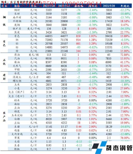 免責聲明:本網站(山東聊城晟杰無縫鋼管廠www.gdqiayu.com)刊載的“周報:大宗工業原材料、能源及農產品價格周報(5.16-5.20)”等均源于網絡,版權歸原作者所有,且僅代表原作者觀點,本文所載信息僅供參考。轉載僅為學習與交流之目的,如無意中侵犯您的合法權益,請及時聯系刪除。本網站刊登此篇文章并不意味著本站贊同其觀點或證實其內容的真實性,我們不對其科學性、嚴肅性等作任何形式的保證。如果侵犯了您的版權,請盡快聯系我們予以撤銷,謝謝合作!