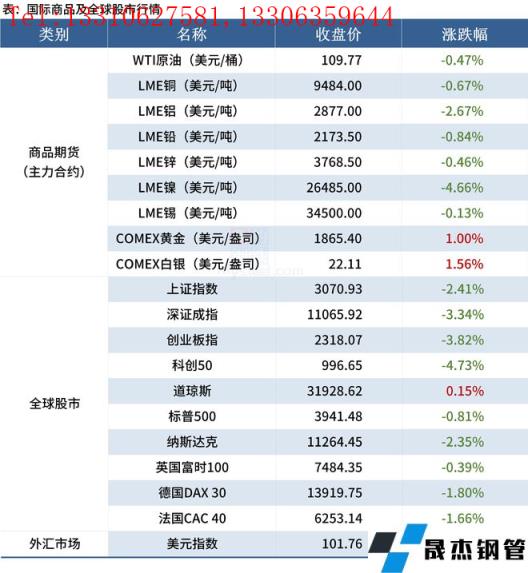 ◎ 世界鋼協:2022年4月全球粗鋼產量同比下降5.1%至1.627億噸。中國4月的粗鋼產量為9280萬噸,同比下降了5.2%;印度4月產量為1010萬噸,同比增長6.2%;日本4月產量為750萬噸,同比下降了4.4%;美國4月產量為690萬噸,同比下降3.9%。