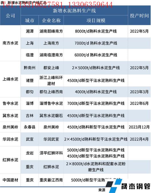 免責聲明:本網站(山東聊城晟杰無縫鋼管廠www.gdqiayu.com)刊載的“:5月新增11條熟料水泥生產線,紅獅產能最大”等均源于網絡,版權歸原作者所有,且僅代表原作者觀點,本文所載信息僅供參考。轉載僅為學習與交流之目的,如無意中侵犯您的合法權益,請及時聯系刪除。本網站刊登此篇文章并不意味著本站贊同其觀點或證實其內容的真實性,我們不對其科學性、嚴肅性等作任何形式的保證。如果侵犯了您的版權,請盡快聯系我們予以撤銷,謝謝合作!