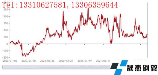 第四階段,2021年9月-2021年12月(價格下跌,卷螺差震蕩幅度加大),煤焦等原料成本坍塌,加上房地產政策的收緊,建筑厚壁無縫鋼管進入需求淡季,整體表現弱于板材。價格下跌,卷螺差寬幅震蕩,高點408、438,低點96、7。