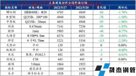 免責聲明:本網站(山東聊城晟杰無縫鋼管廠www.gdqiayu.com)刊載的“建筑原材料周報(5.23-5.27)”等均源于網絡,版權歸原作者所有,且僅代表原作者觀點,本文所載信息僅供參考。轉載僅為學習與交流之目的,如無意中侵犯您的合法權益,請及時聯系刪除。本網站刊登此篇文章并不意味著本站贊同其觀點或證實其內容的真實性,我們不對其科學性、嚴肅性等作任何形式的保證。如果侵犯了您的版權,請盡快聯系我們予以撤銷,謝謝合作!