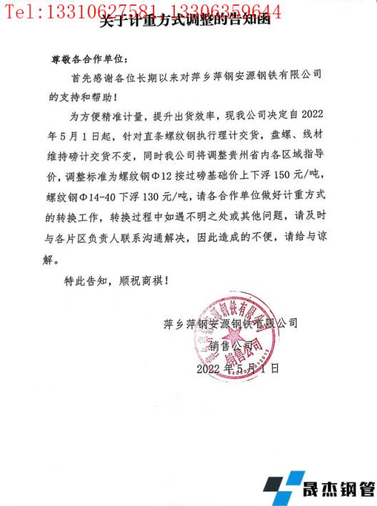 免責聲明:本網站(山東聊城晟杰無縫鋼管廠www.gdqiayu.com)刊載的“萍鄉萍鋼安源鋼鐵有限公司關于對貴州區域計重方式調整的告知函”等均源于網絡,版權歸原作者所有,且僅代表原作者觀點,本文所載信息僅供參考。轉載僅為學習與交流之目的,如無意中侵犯您的合法權益,請及時聯系刪除。本網站刊登此篇文章并不意味著本站贊同其觀點或證實其內容的真實性,我們不對其科學性、嚴肅性等作任何形式的保證。如果侵犯了您的版權,請盡快聯系我們予以撤銷,謝謝合作!