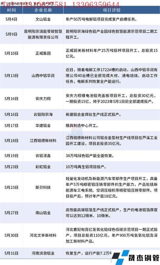 免責聲明:本網站(山東聊城晟杰無縫鋼管廠www.gdqiayu.com)刊載的“5月國內14個鋁項目開工、投產或復產”等均源于網絡,版權歸原作者所有,且僅代表原作者觀點,本文所載信息僅供參考。轉載僅為學習與交流之目的,如無意中侵犯您的合法權益,請及時聯系刪除。本網站刊登此篇文章并不意味著本站贊同其觀點或證實其內容的真實性,我們不對其科學性、嚴肅性等作任何形式的保證。如果侵犯了您的版權,請盡快聯系我們予以撤銷,謝謝合作!