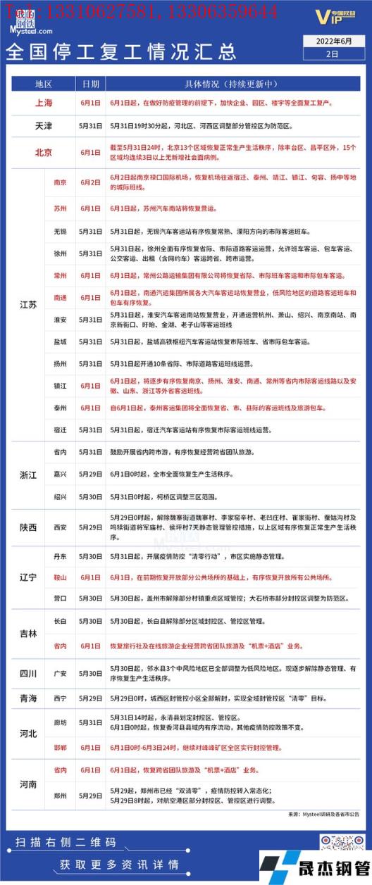 免責聲明:本網站(山東聊城晟杰無縫鋼管廠www.gdqiayu.com)刊載的“疫情影響丨全國停工復工情況匯總(6月2日)”等均源于網絡,版權歸原作者所有,且僅代表原作者觀點,本文所載信息僅供參考。轉載僅為學習與交流之目的,如無意中侵犯您的合法權益,請及時聯系刪除。本網站刊登此篇文章并不意味著本站贊同其觀點或證實其內容的真實性,我們不對其科學性、嚴肅性等作任何形式的保證。如果侵犯了您的版權,請盡快聯系我們予以撤銷,謝謝合作!