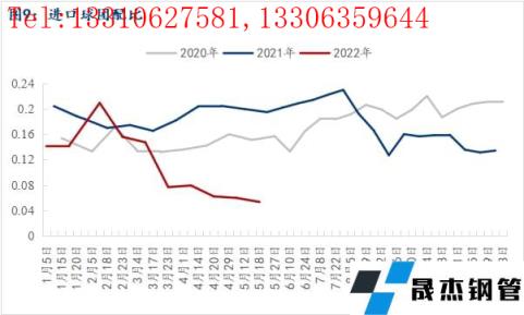 截至5月18日,統計無縫厚壁鋼管廠家高爐里面球團消耗中進口球團占比5.3%,環比年初減少15.6個百分點,同比去年同期降14.1個百分點;而國內球占比高達94.7%,環比年初增加15.6個百分點,同比去年增加14.1個百分點。