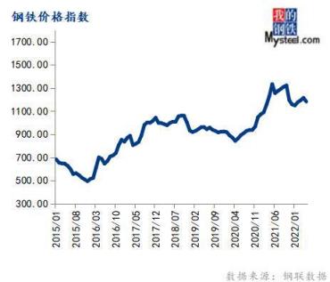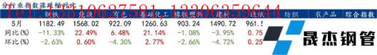 5月份鋼鐵價格指數為1182.49,環比下跌2.63%,同比下跌11.33%。
