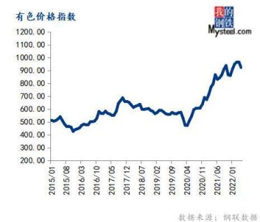 5月份有色金屬價格指數為922.09,環比下跌4.30%,同比上漲6.48%。