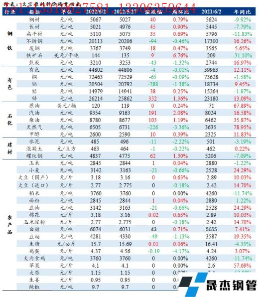 免責聲明:本網站(山東聊城晟杰無縫鋼管廠www.gdqiayu.com)刊載的“周報:大宗工業原材料、能源及農產品價格周報(5.30-6.02)”等均源于網絡,版權歸原作者所有,且僅代表原作者觀點,本文所載信息僅供參考。轉載僅為學習與交流之目的,如無意中侵犯您的合法權益,請及時聯系刪除。本網站刊登此篇文章并不意味著本站贊同其觀點或證實其內容的真實性,我們不對其科學性、嚴肅性等作任何形式的保證。如果侵犯了您的版權,請盡快聯系我們予以撤銷,謝謝合作!