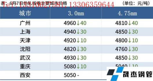 6月7日,國內厚壁無縫鋼管市場價格偏強運行,唐山普方坯出廠價漲30報4500元/噸。早盤成交整體偏弱,投機和工地需求均不多。午后隨著期螺的進一步下行,現貨價格整體下跌,全天成交疲弱。