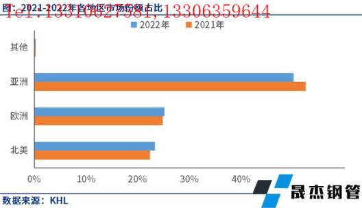 從全球各地區來看,2022年北美和歐洲市場份額占比均有不同程度提升。亞洲市場份額下降,從52.4%降至50.1%,下降2.3個百分點。