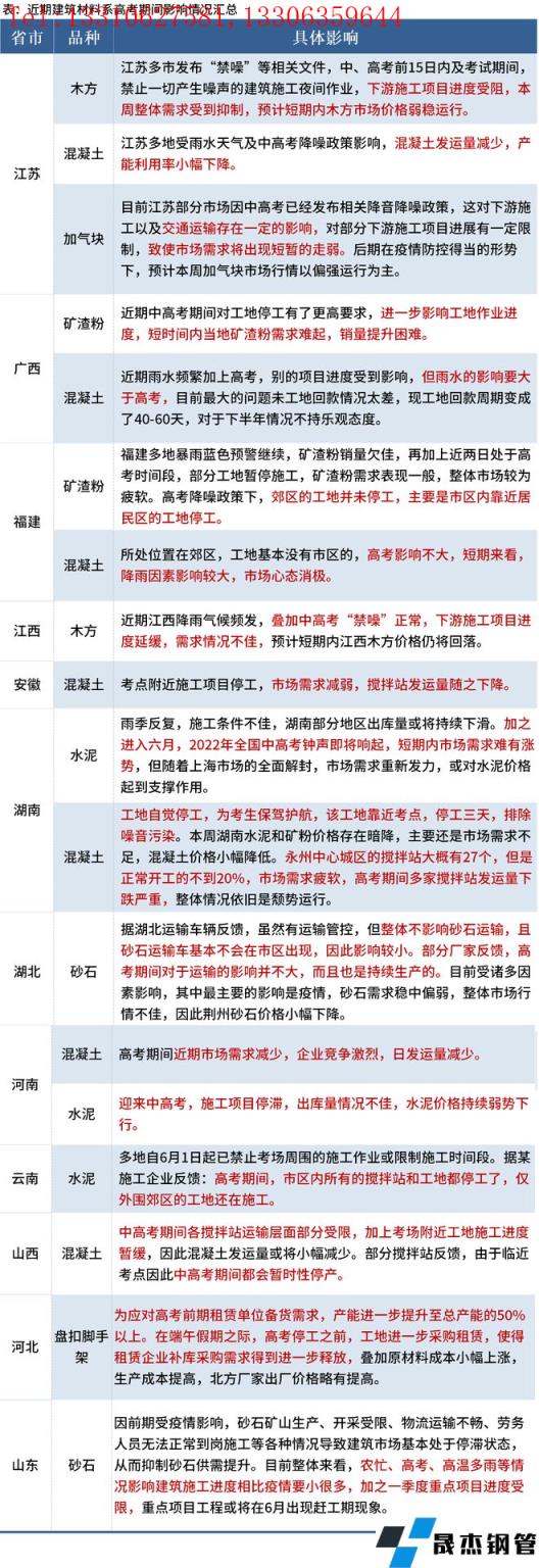 截至6月10日,據百年建筑網調研顯示,共有12個省市建筑市場和建筑工地建筑工地進度受到明顯影響。整體來看,近兩周全國為為中高考做準備,及多地疫情隱有再抬頭跡象,加之暴雨天氣遍及多地,對于工程項目恢復并不榮樂觀,短期整體市場仍會呈現供需兩弱局面。具體情況如下: