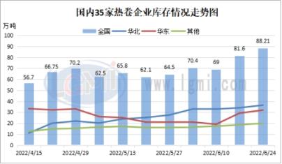 二、六月份國內熱軋卷板庫存繼續攀升