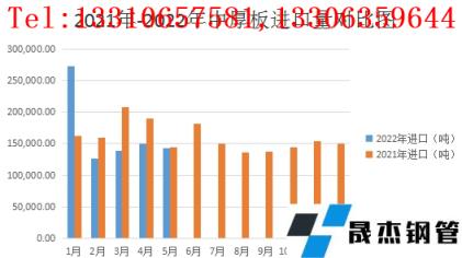 圖4 中厚板產品2021-2022年度進口量對比圖