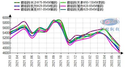 二季度,受3月份吉林、上海等地疫情影響,尤其上海疫情散發全國近30個省市,且周期兩個多月,對于本地以及周邊江浙地區運輸、制造等行業影響重大,其中吉林、上海兩地占全國汽車產量20%,對于汽車用鋼形成明顯制約。無縫鋼管廠家訂單逐步減少,市場價格持續走低。其中4-6月份中天、淮鋼對優特鋼出廠價格累計下調810元。