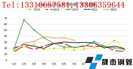 導語:7月份國內優特鋼市場價格大幅下跌。進入7月份后,隨著北方高溫天氣和南方雨季的到來,鋼市正式進入了需求淡季,疊加疫情反復影響,導致整體需求不佳。月內宏觀消息面喜憂參半,擾動市場行情。近期外圍加息消息不斷,歐洲央行11年來首次加息(加息50個基點),9月份可能繼續加息;美聯儲再次加息75個基點,整體經濟氛圍仍偏悲觀,在一定程度上阻礙了價格的持續上行。
